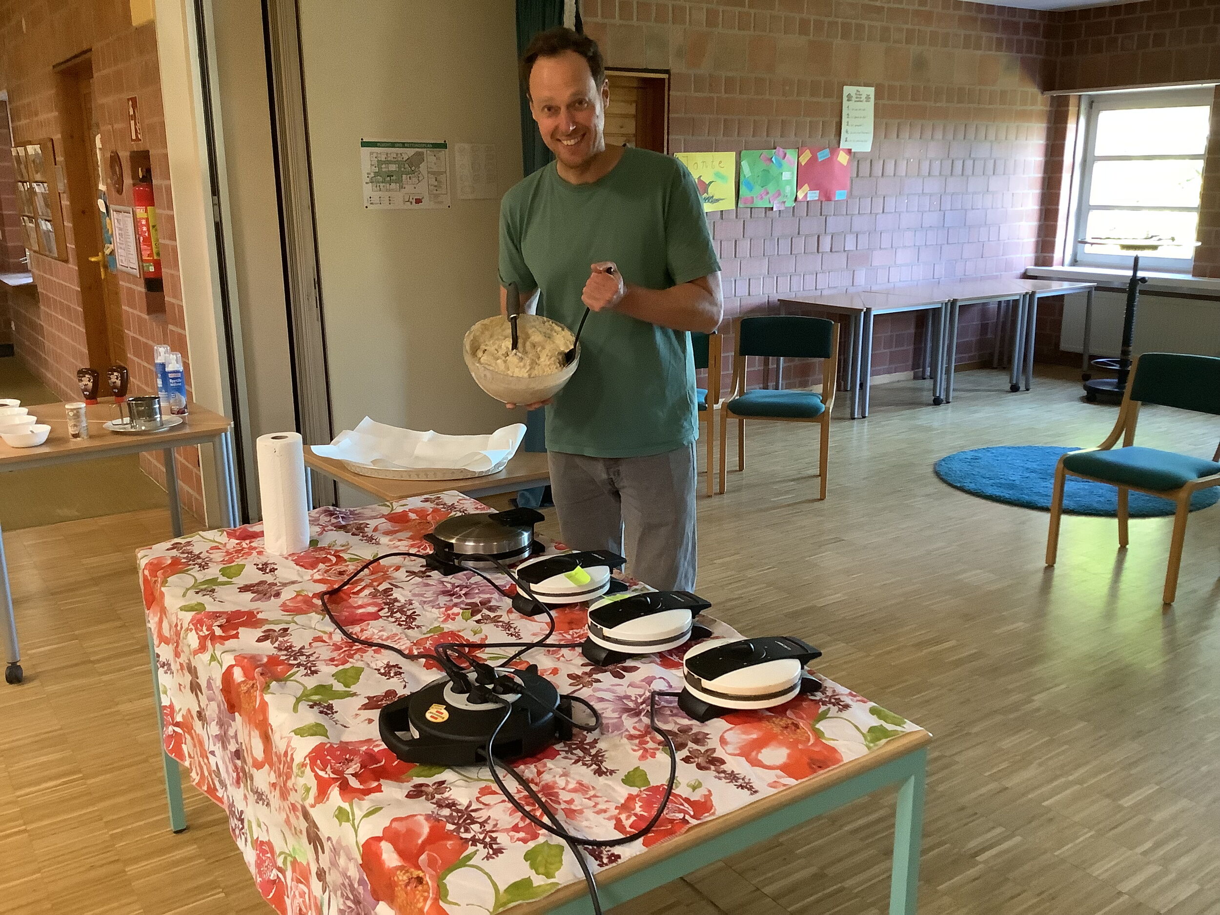 Am 8. September 2025 gab Herr Schmidt, unser neuer Schulleiter, seinen Einstand auf besondere Weise: Vor der Pause verwöhnte er alle Kinder mit frisch gebackenen Waffeln. Die Schülerinnen und Schüler freuten sich sehr über die leckere Überraschung und hatten die Gelegenheit, ihren neuen Schulleiter ganz persönlich kennenzulernen. Wir heißen Herrn Schmidt herzlich willkommen und freuen uns auf eine tolle gemeinsame Zeit!